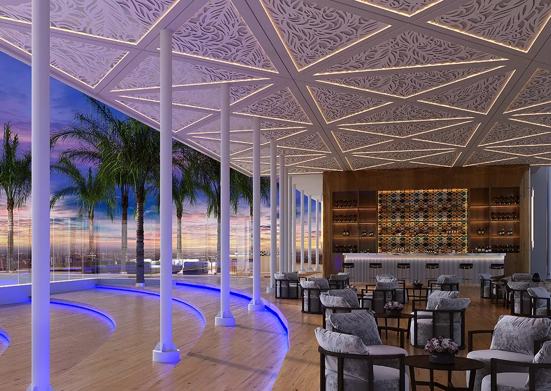 Take a virtual tour of a few out of 50+ signature amenities that complement resplendent 360° views all around from the ground floor to the topmost floor!